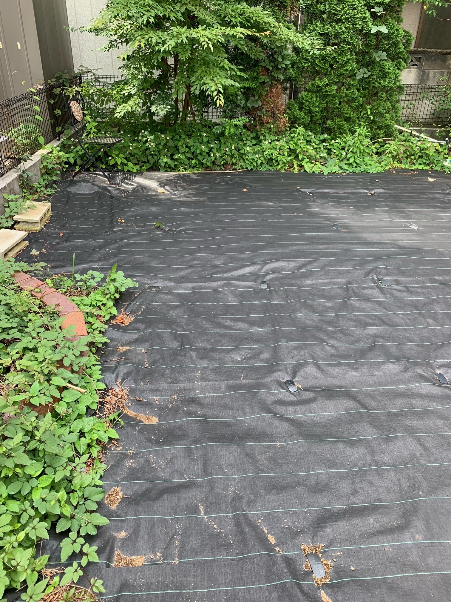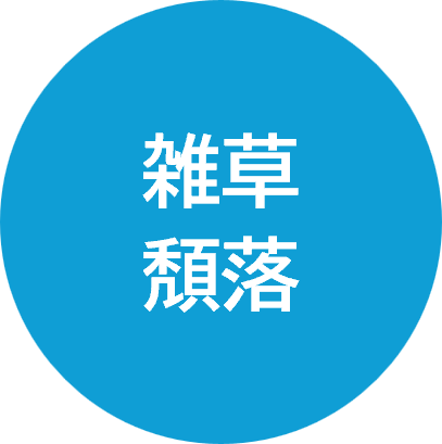 雑草頽(たい)落:既存の雑草や下草・低木などを撤去して防草シートを敷き砂利敷き等で対策をします