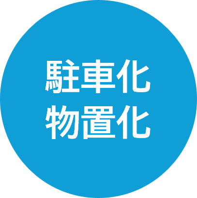 駐車化・物置化:既存の植栽スペースや土の部分を駐車場に変えたり、ストックヤード設置を行います