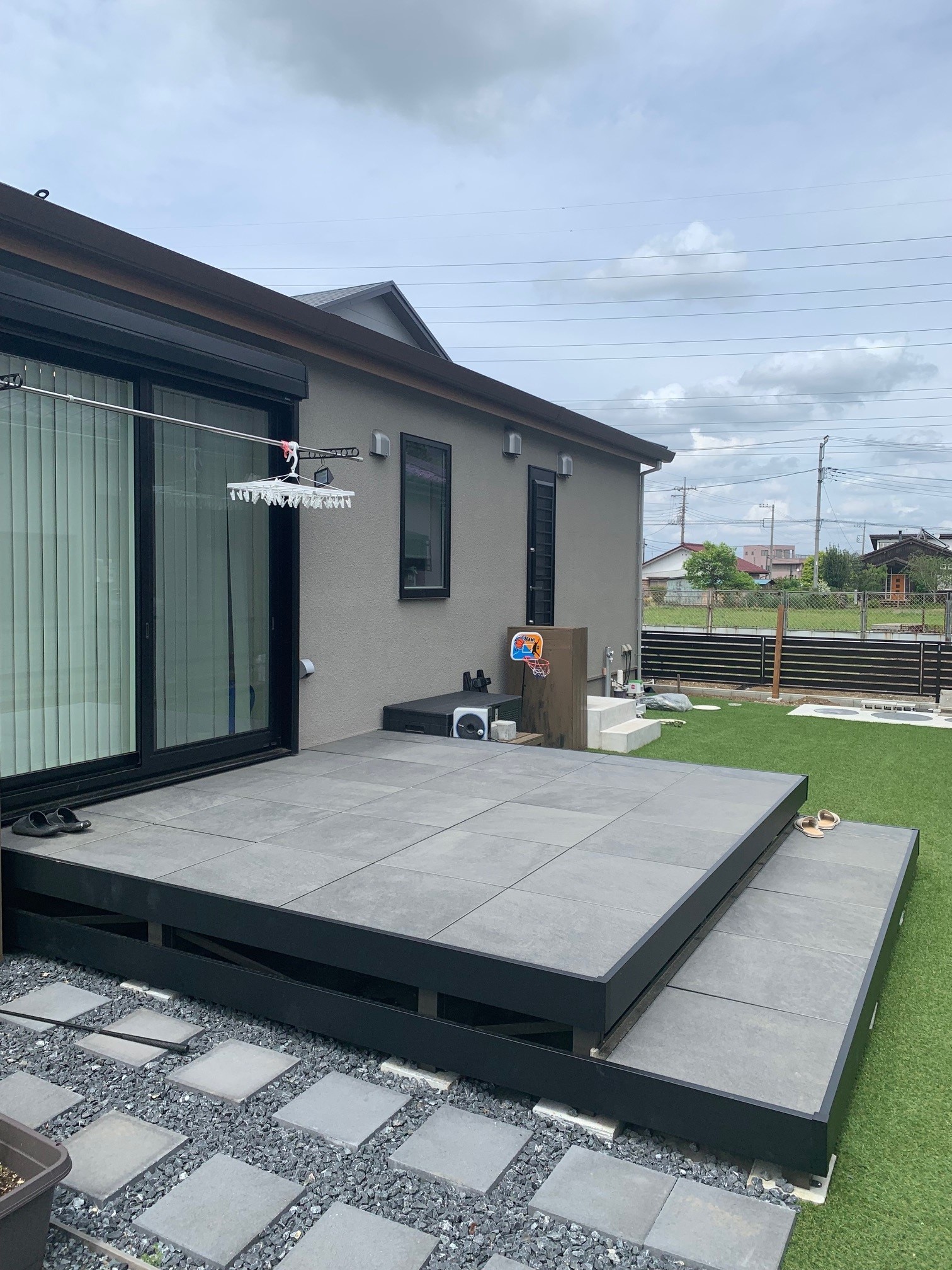 お庭はLIXILさんのタイルデッキで仕上がりました♪