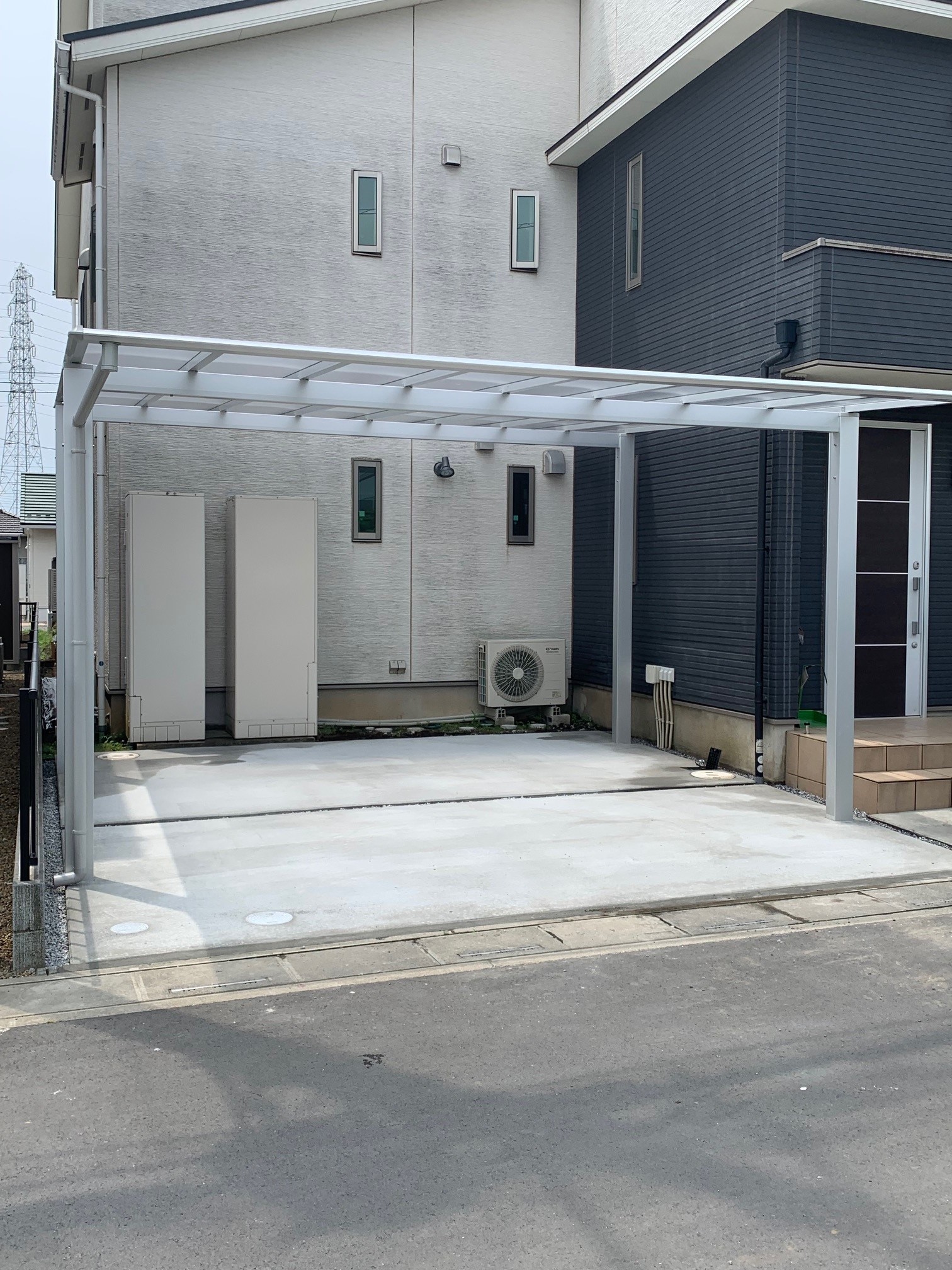 駐車場には2台用カーポートを設置し、床は土間コンクリート打設にて仕上がりました♪