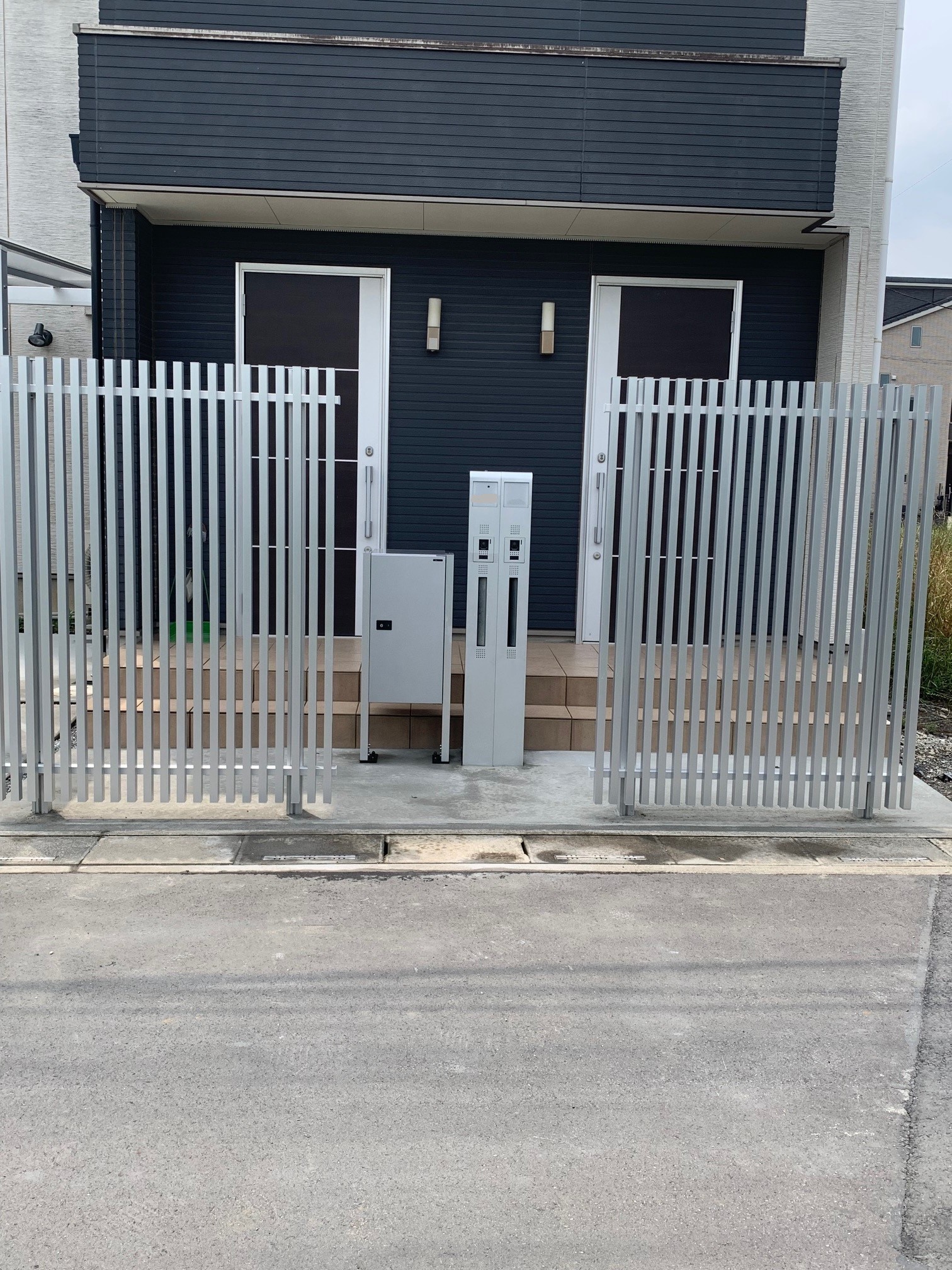玄関前には目隠し用のスクリーンフェンスと宅配ボックスを設置させて頂き、