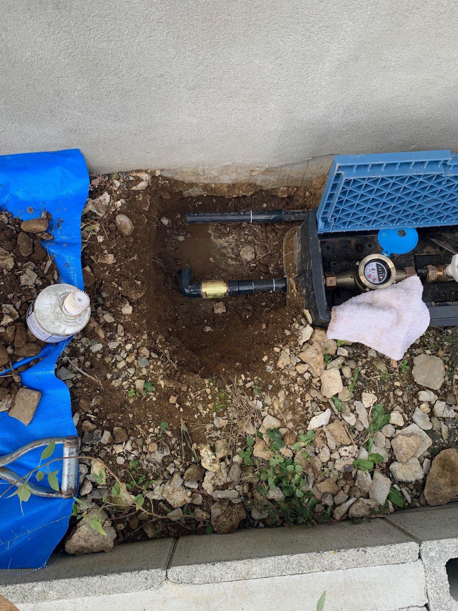 - メーターボックスのすぐ隣を掘削し、配管を切り取ります。